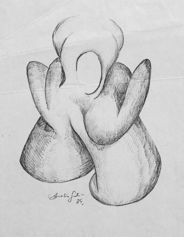 1 REMINISCENT OF (My)BODY CONDITION, pencil on paper, 11x8, 1984 |