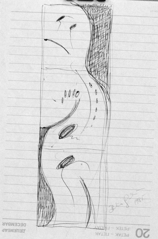 85 REMINISCENT OF (My)BODY CONDITION, pencil on paper, 12x8, 1985 |