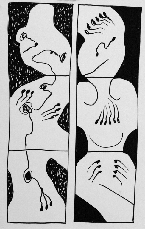 123 REMINISCENT OF (My)BODY CONDITION, ink on paper, 8x6, 1984 |