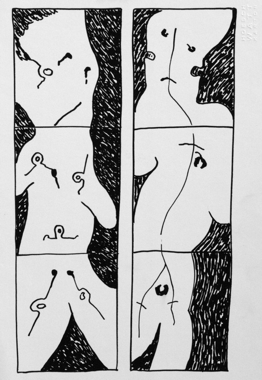 103 REMINISCENT OF (My)BODY CONDITION, ink on paper, 12x9,1985 |