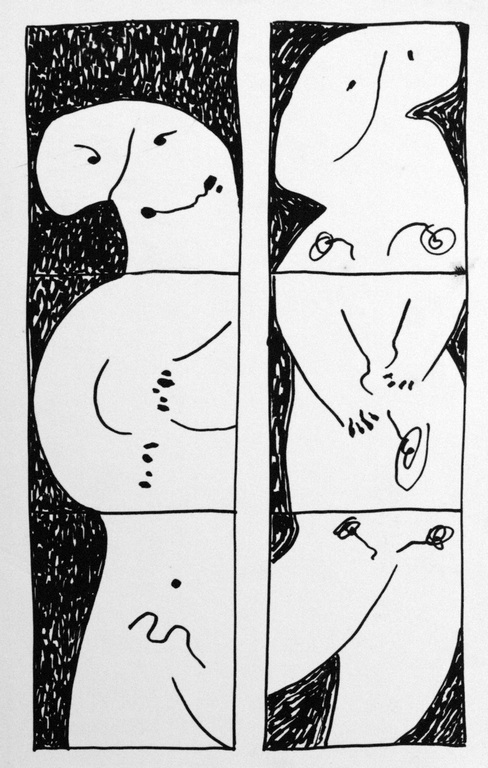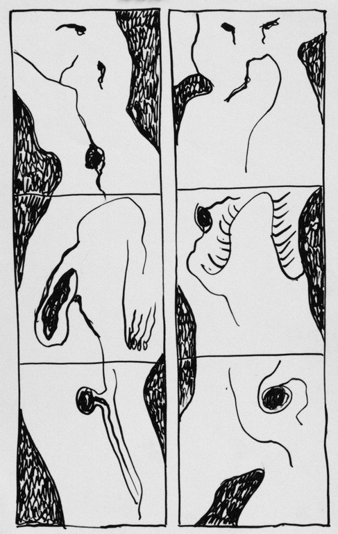 68 REMINISCENT OF (My)BODY CONDITION, ink on paper, 7x5, 1984 |