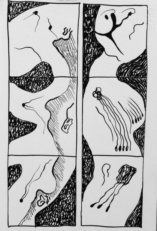 28 REMINISCENT OF (My)BODY CONDITION , ink on paper, 11x8,1984 |