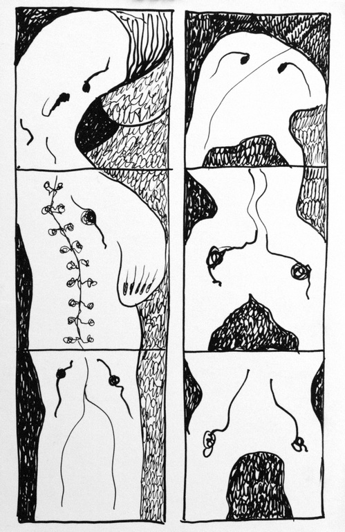 100 REMINISCENT OF (My)BODY CONDITION, ink on paper, 12x9,1987 |