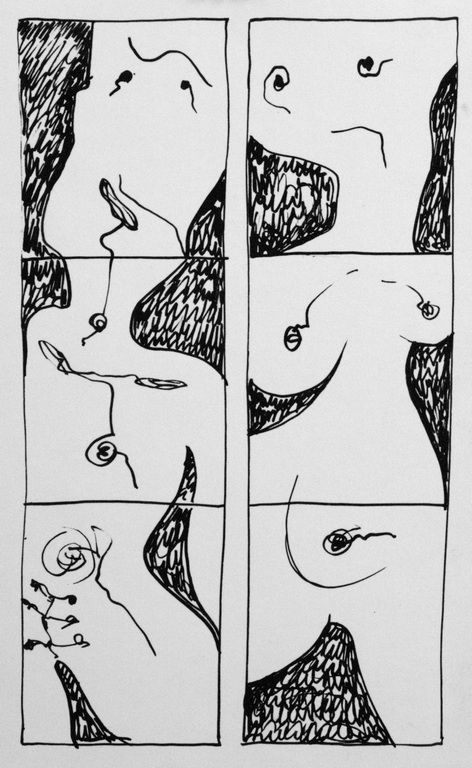 27 REMINISCENT OF (My)BODY CONDITION , ink on paper, 11x8,1984 |