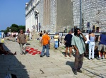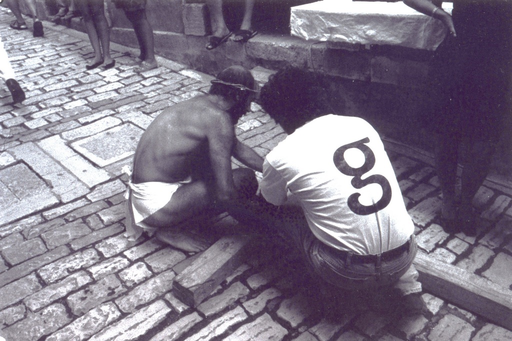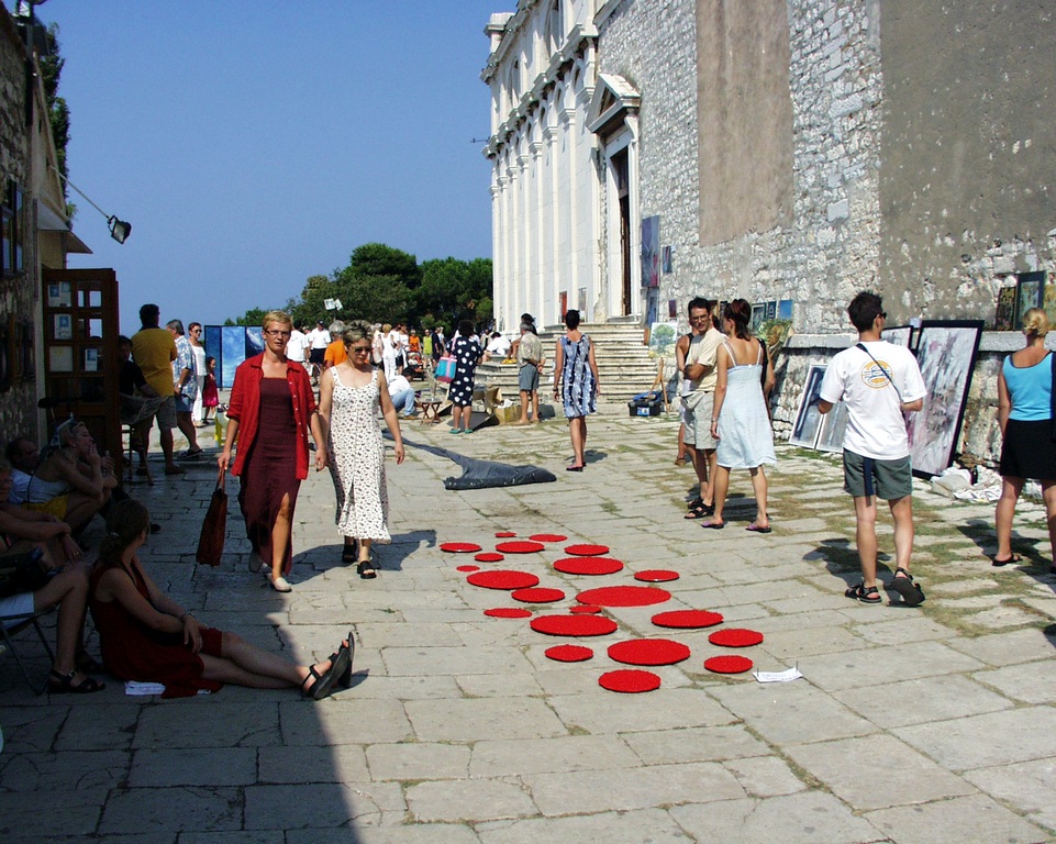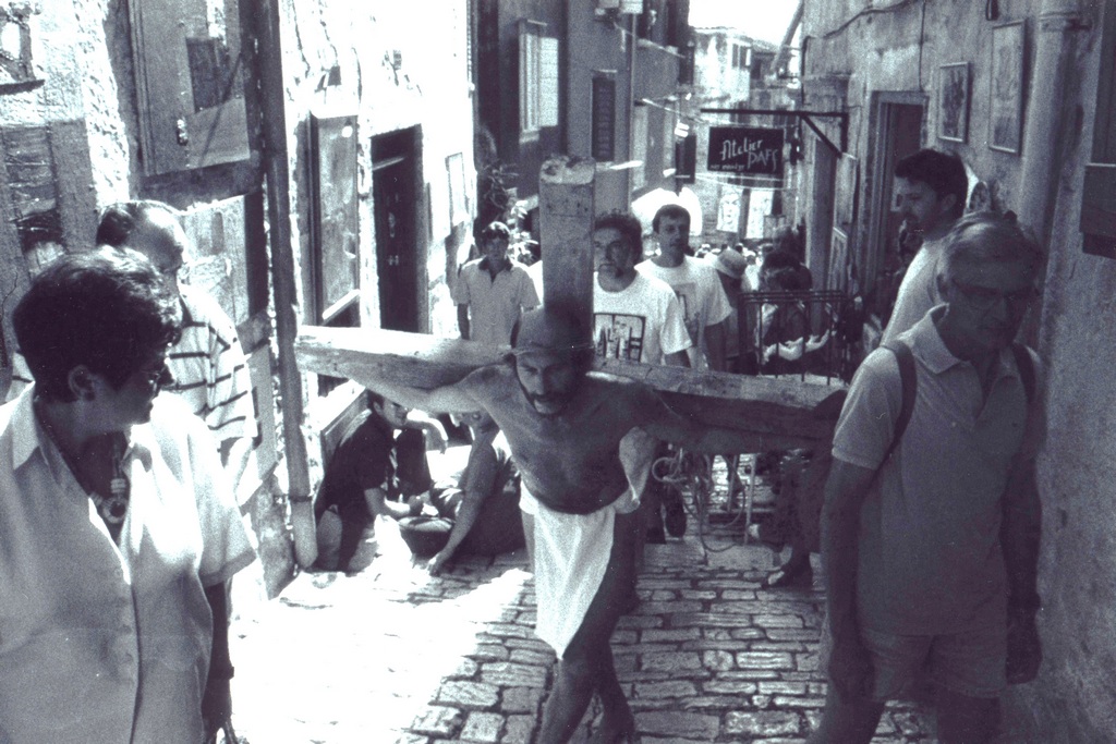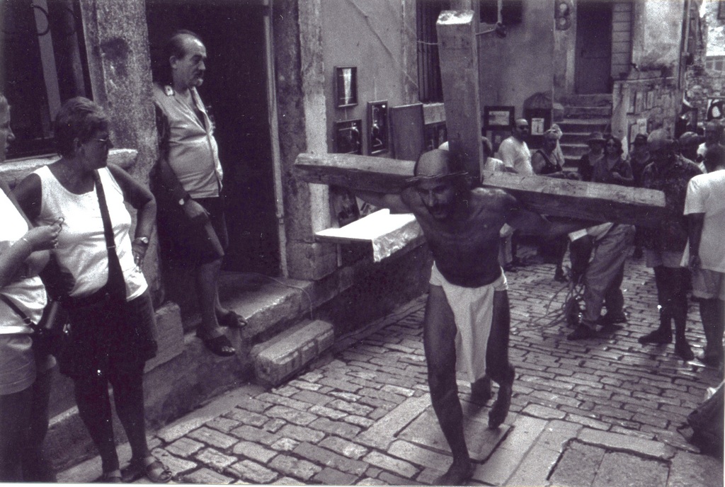 While performing, a Mass was being held inside the church. After Mass, a priest, who’d come out of the church and was shocked by our performance, immediately called the police. He explained we were insulting the Faith and didn’t have the right or license to use a man as Christ or to make of him for sale any relics. When a policeman arrived, he requested our identification for the purpose of prosecution, and we were forced to stop the performance. We were sued by the police for disturbing the peace, but the judge dismissed the case. This incident caused a big stir in Croatia regarding freedom of expression and the position of Church and State vis-à-vis individual freedom.